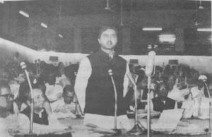 মুজিবনগর সরকারের শপথ অনুষ্ঠানে ভাষণ দিচ্ছেন সৈয়দ নজরুল ইসলাম