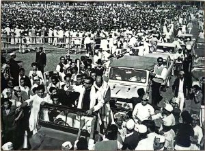১৯৭১ সালের ৩ জানুয়ারি রেসকোর্স ময়দানে শপথ অনুষ্ঠানে যাচ্ছেন বঙ্গবন্ধু